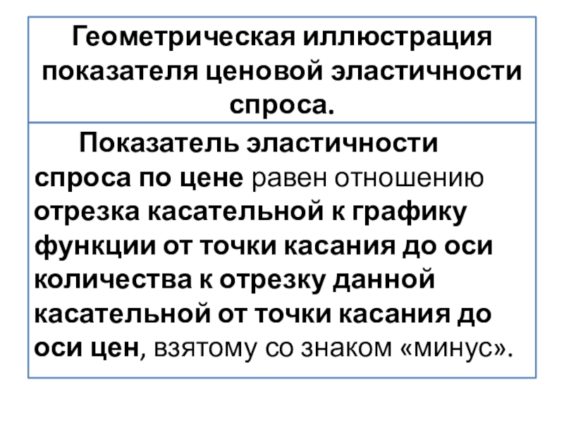 функции от точки касания до оси количества к отрезку данной касательной от точки касания до оси цен, взятому со знаком «минус».