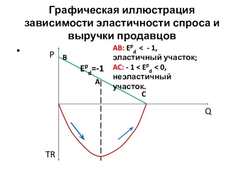 Слайд 14Графическая иллюстрация зависимости эластичности спроса и выручки продавцов