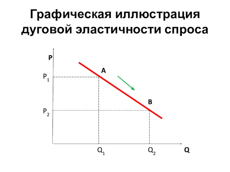 Слайд 5Графическая иллюстрация дуговой эластичности спроса