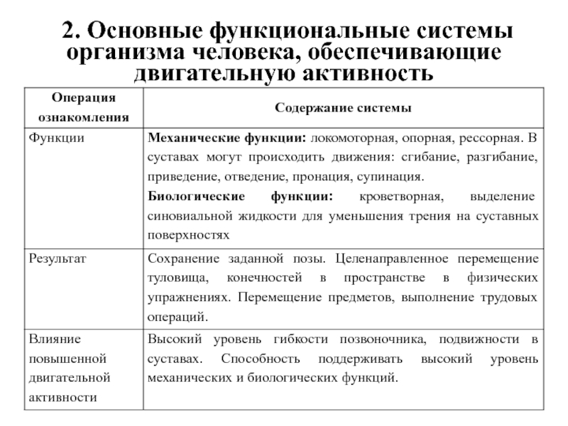 2. Основные функциональные системы организма человека, обеспечивающие двигательную активность