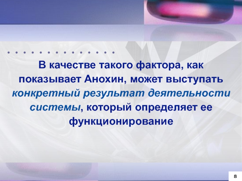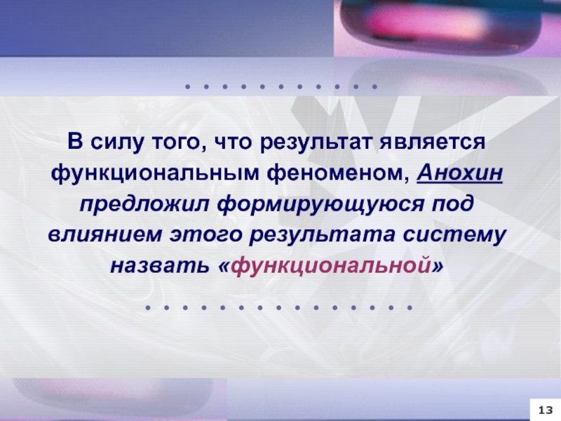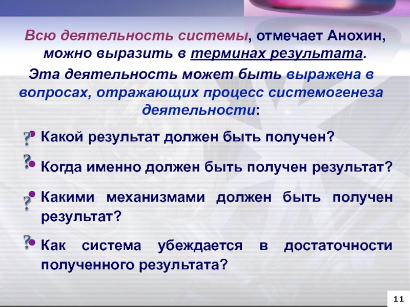 Исходя из высказанных положений о значении резуль-тата, Анохин дает следующее определение системы: