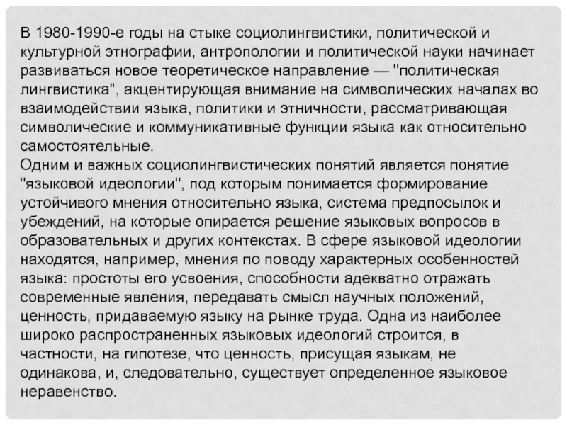 Слайд 5В 1980-1990-е годы на стыке социолингвистики, политической и культурной этнографии,