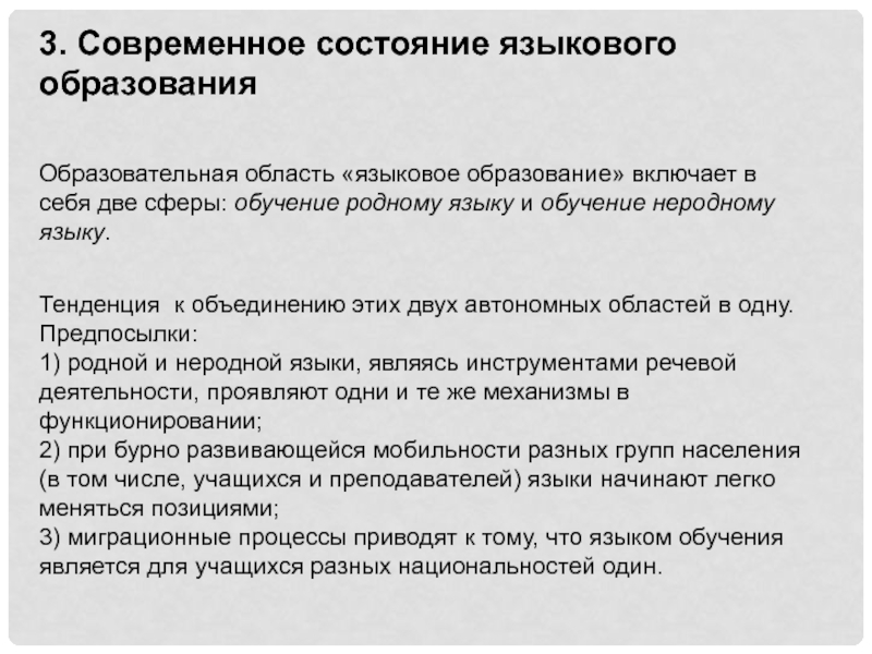 3) миграционные процессы приводят к тому, что языком обучения является для учащихся разных национальностей один.