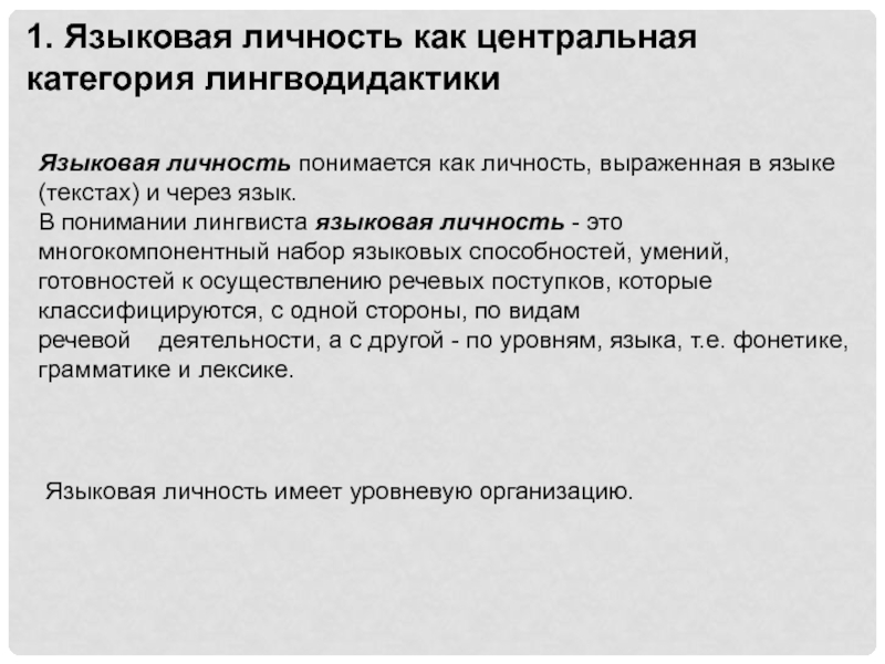 Слайд 21. Языковая личность как центральная категория лингводидактики