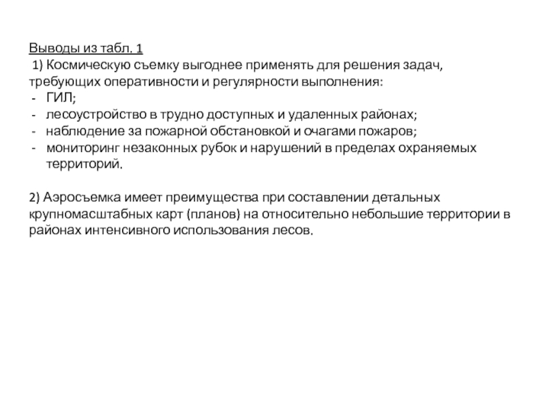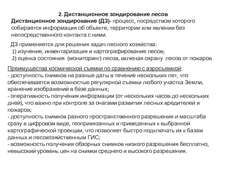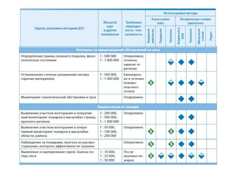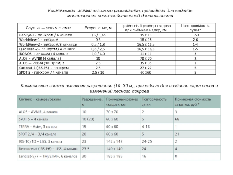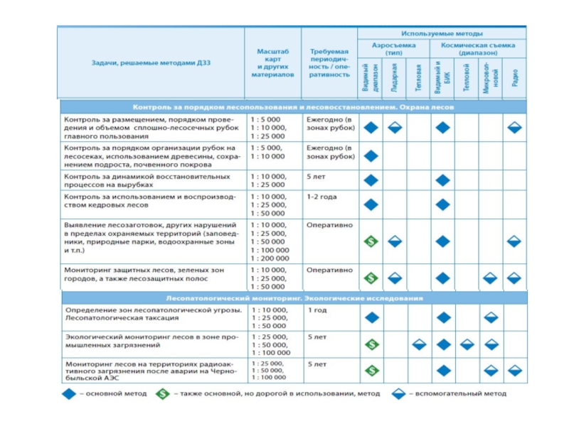 - оперативность получения информации (от нескольких часов до нескольких дней), что важно при контроле за очагами развития лесных вредителей и пожаров;