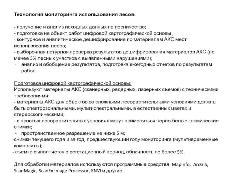 - доступность снимков разного пространственного разрешения и масштаба сразу в цифровом виде, геопривязанных и приведенных к выбранной картографической проекции, что позволяет быстро подключать их к базам данных и лесохозяйственным ГИС;