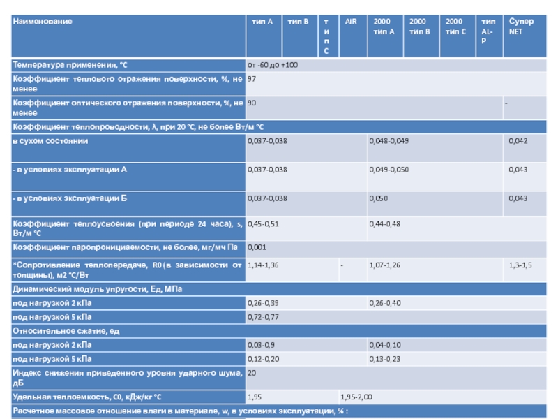 Слайд 10Сравнительная таблица Пенофола с другими утеплителями