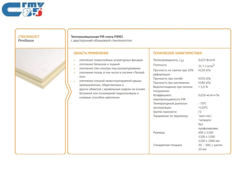Коэффициент теплопроводности, Вт/(м К).............................0,028...0,032
