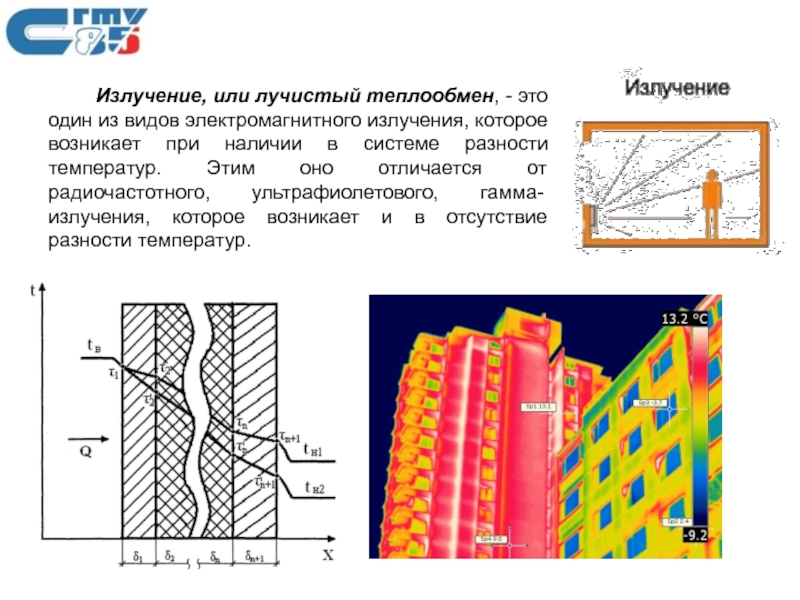 Слайд 5Излучение, или лучистый теплообмен, - это один из видов электромагнитного