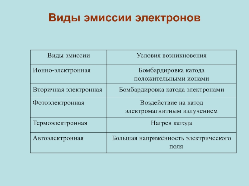 Электрический ток в вакууме. Электрический ток в вакууме – направленный поток заряженных частиц, обычно – электронов.Электронная эмиссия–+Ионно-электронная эмиссия