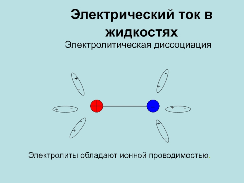 Электрический ток в жидкостях Электролитическая диссоциацияЭлектролиты обладают ионной проводимостью.