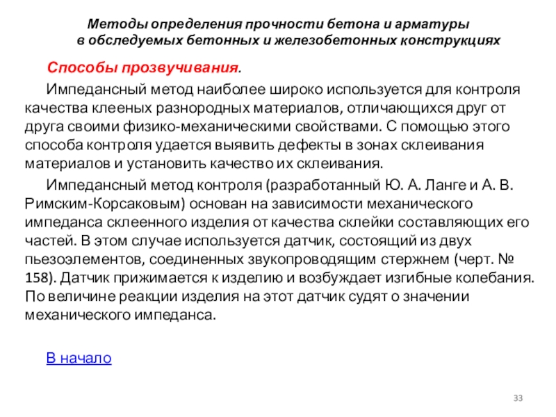 Эти трудности ограничивают применение методов, связанных со взятием образцов из конструкций, и стимулируют развитие неразрушающих методов испытания.