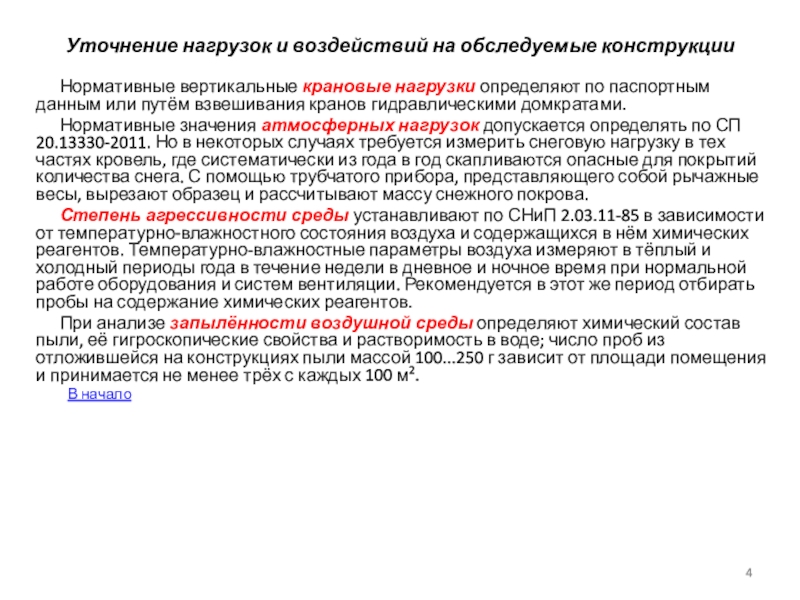 Слайд 4Уточнение нагрузок и воздействий на обследуемые конструкции