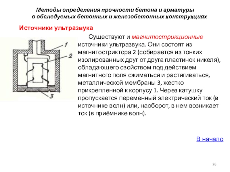 Существуют и магнитострикционные источники ультразвука. Они состоят из