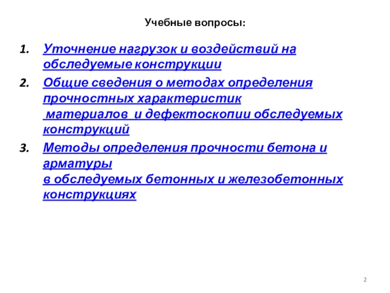 Слайд 3Уточнение нагрузок и воздействий на обследуемые конструкции