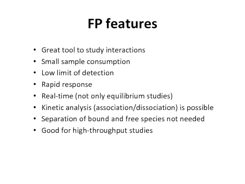 Hydrophobic fluorescent labelling required, may cause non-specific binding