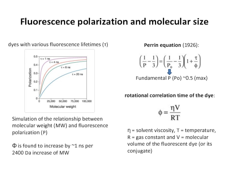 Simulation of the relationship between molecular weight (MW) and fluorescence polarization (P)