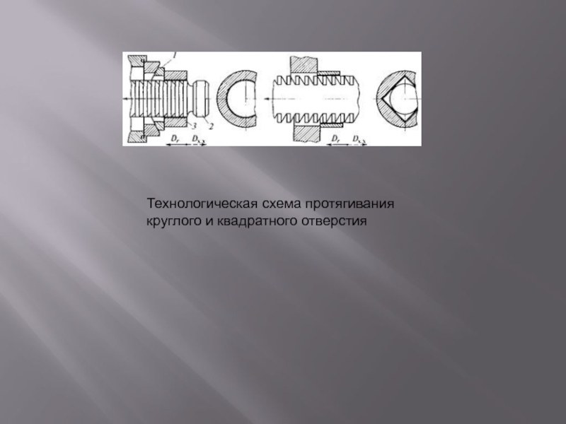 Слайд 7Технологическая схема протягивания круглого и квадратного отверстия
