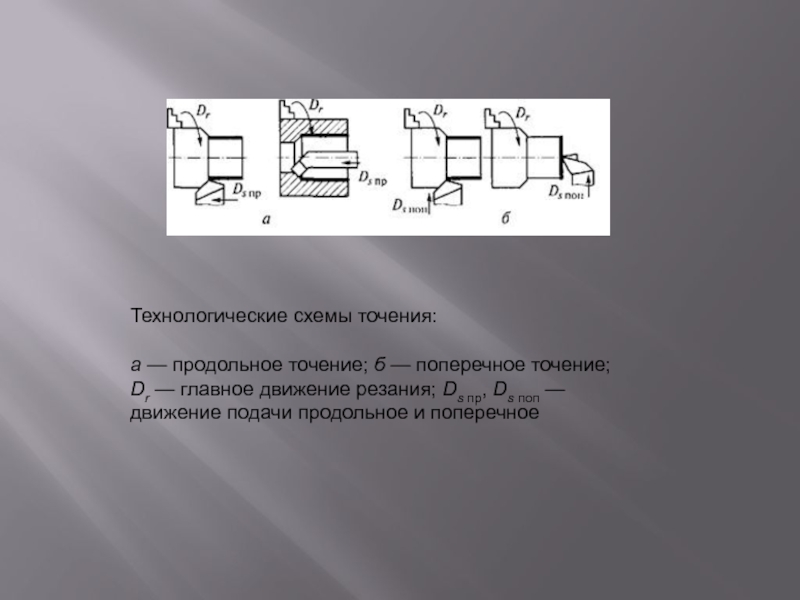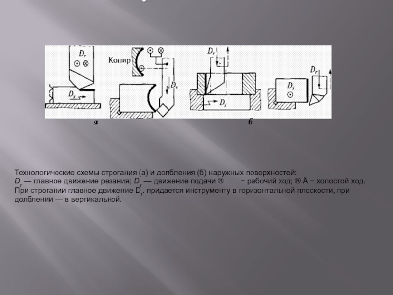 Слайд 5Технологические схемы строгания (а) и долбления (б) наружных поверхностей: