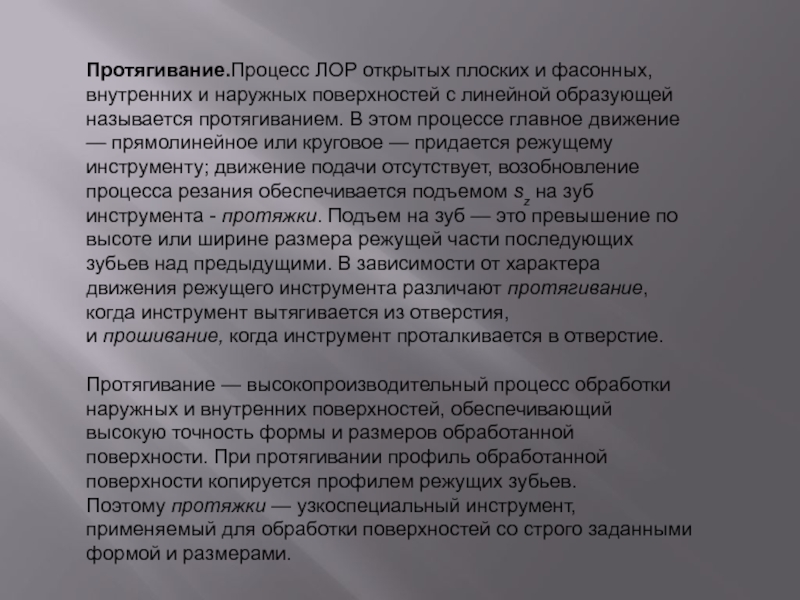 Слайд 6Протягивание.Процесс ЛОР открытых плоских и фасонных, внутренних и наружных поверхностей