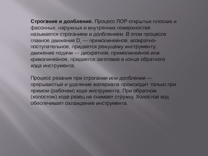 Слайд 4Строгание и долбление. Процесс ЛОР открытых плоских и фасонных, наружных