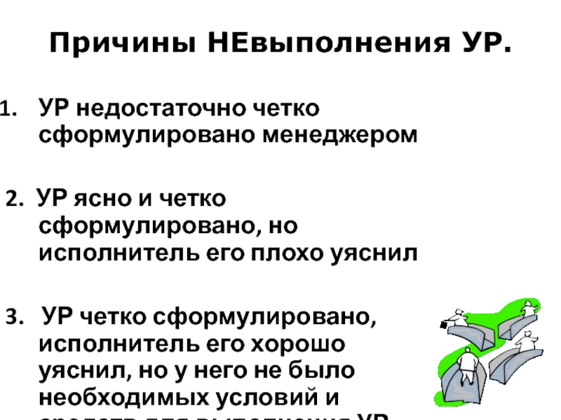 сформулировано, исполнитель его хорошо уяснил, но у него не было необходимых условий и средств для выполнения УР