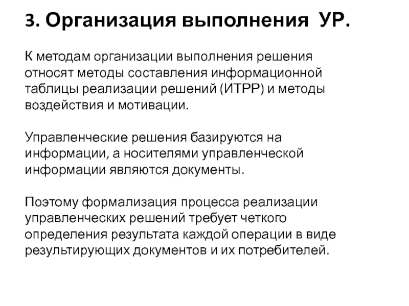 составления информационной таблицы реализации решений (ИТРР) и методы воздействия и