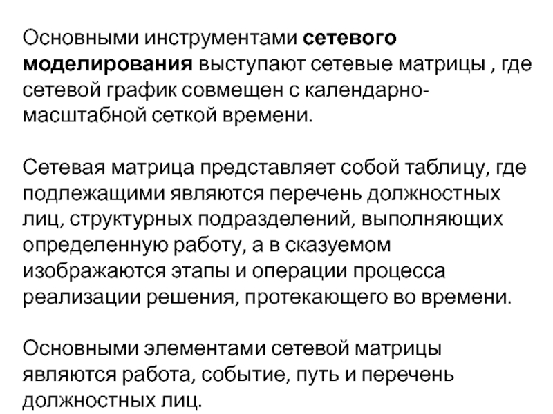 Слайд 26Основными инструментами сетевого моделирования выступают сетевые матрицы , где сетевой