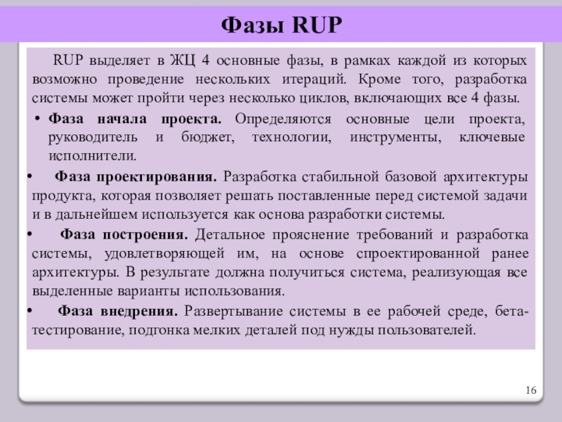 того, разработка системы может пройти через несколько циклов, включающих все 4 фазы.