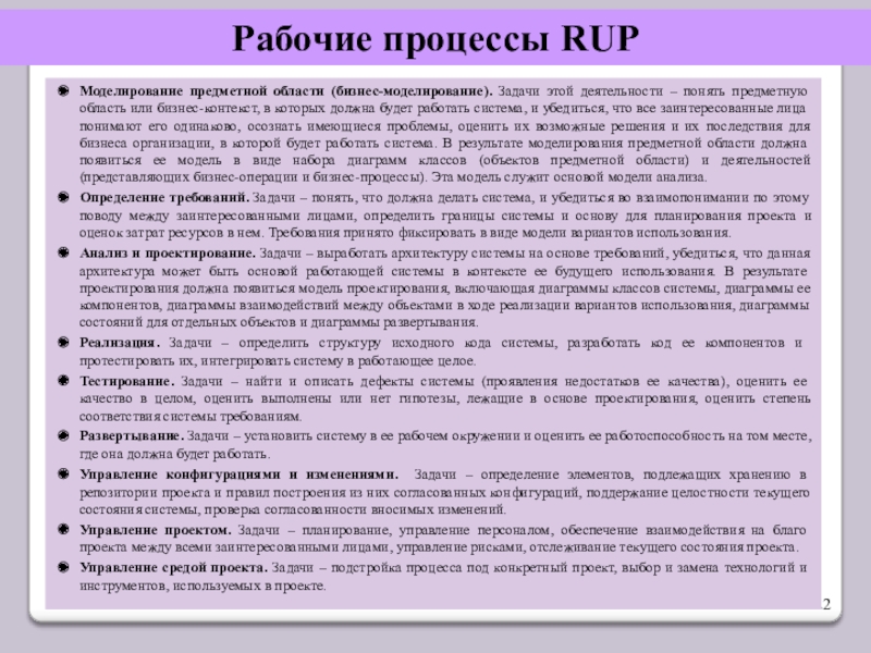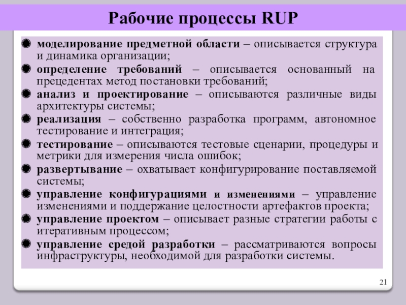 управление проектом – описывает разные стратегии работы с итеративным процессом;