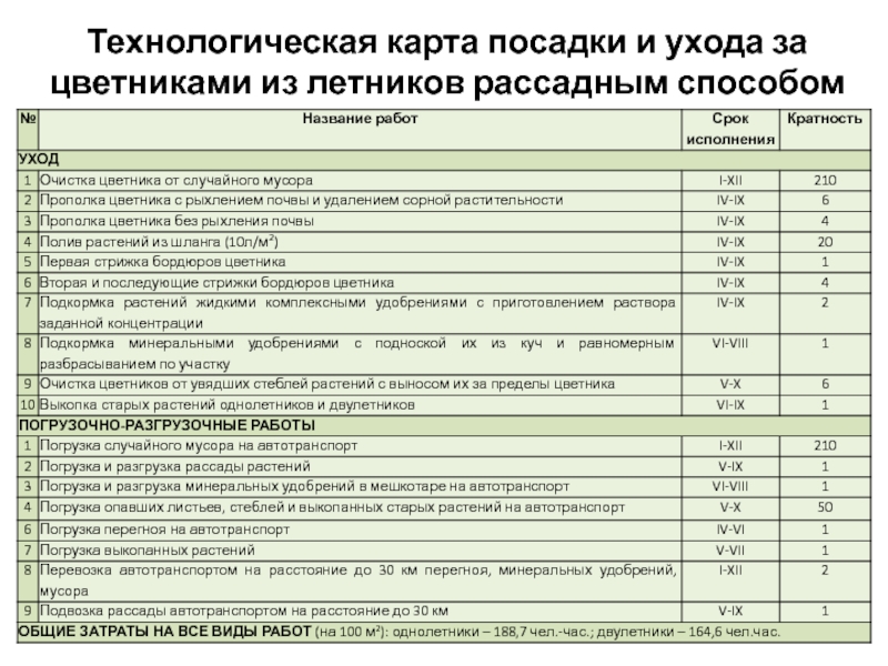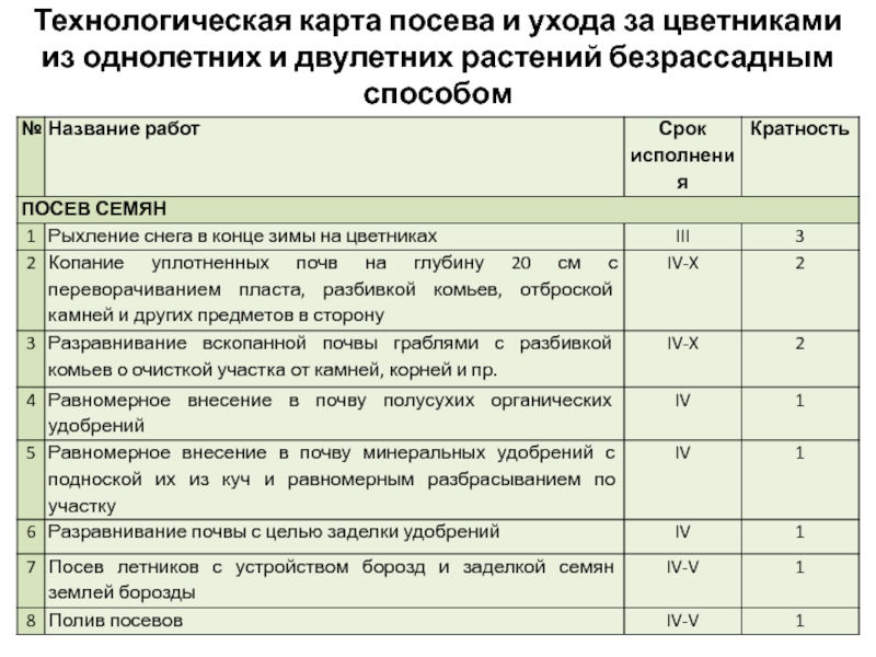 Слайд 17Технологическая карта посева и ухода за цветниками из однолетних и