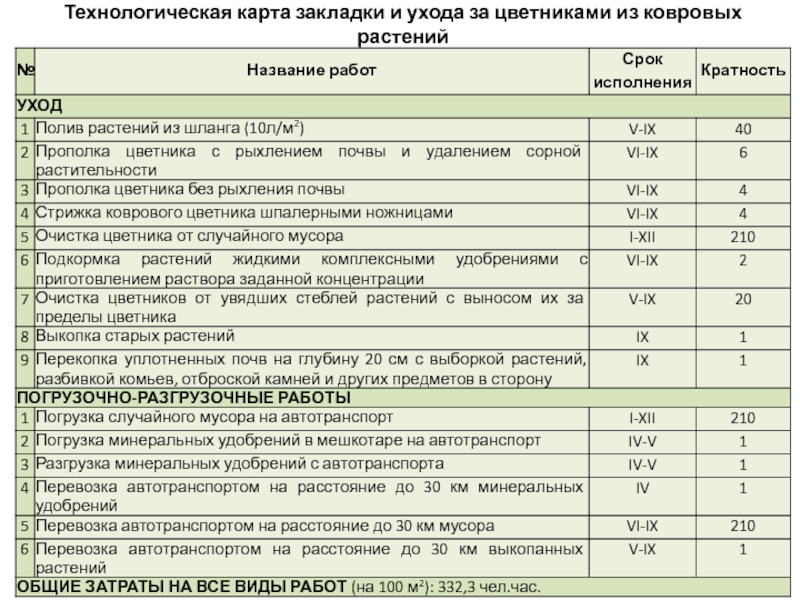 Слайд 19Технологическая карта закладки и ухода за цветниками из ковровых растений