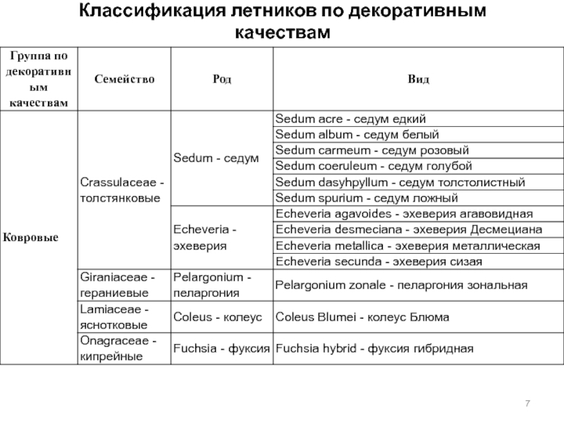 Слайд 22Классификация многолетних травянистых растений по высоте, срокам цветения, декоративным качествам