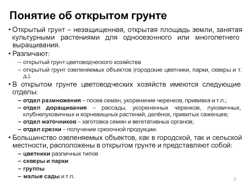 открытый грунт озеленяемых объектов (городские цветники, парки, скверы и т.д.).