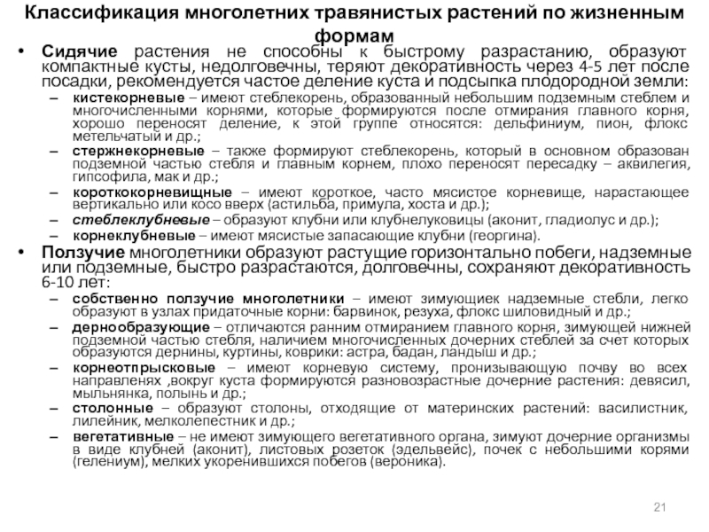 Слайд 21Классификация многолетних травянистых растений по жизненным формам