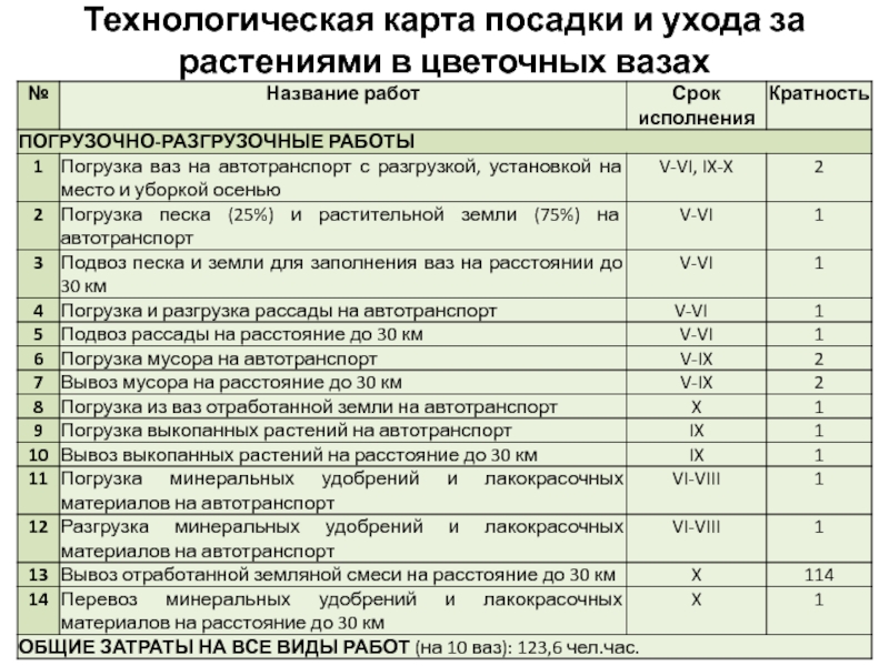 Слайд 40Технологическая карта посадки и ухода за растениями в цветочных вазах