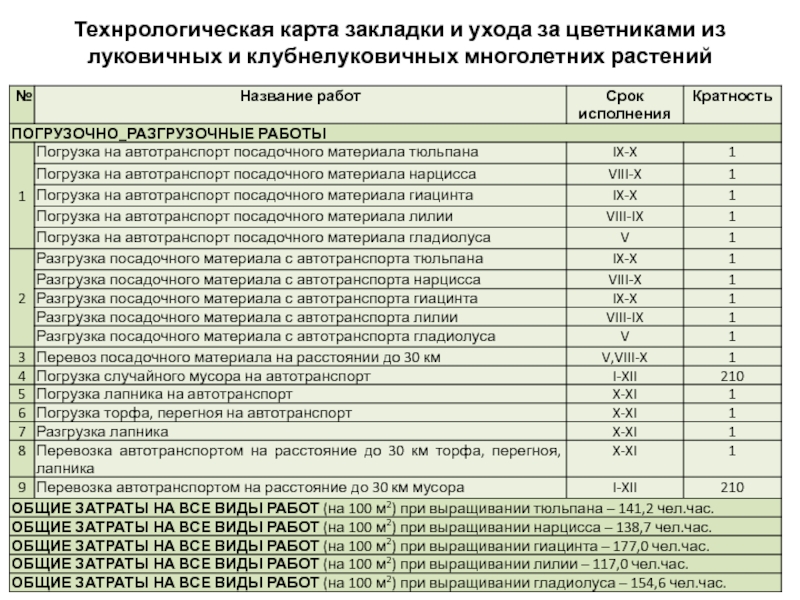 Слайд 36Технрологическая карта закладки и ухода за цветниками из луковичных и