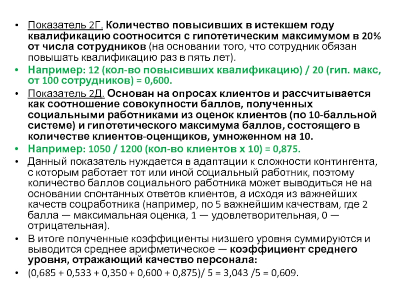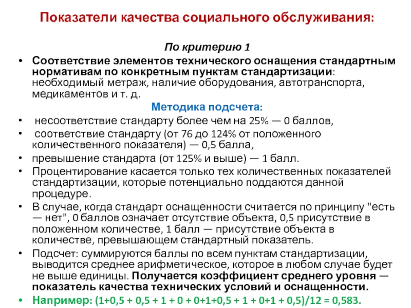 В заключение производится подсчет коэффициента высшего уровня — показателя качества социального обслуживания в ОСО по всем трем критериям: