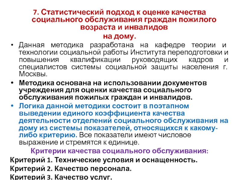 Слайд 327. Статистический подход к оценке качества социального обслуживания граждан пожилого