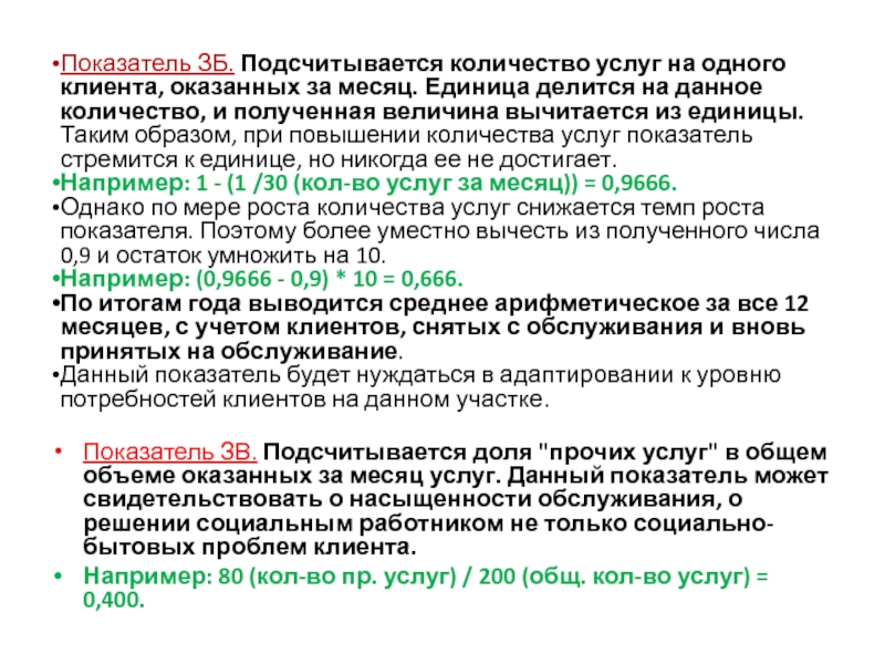 Слайд 37Показатель ЗБ. Подсчитывается количество услуг на одного клиента, оказанных за