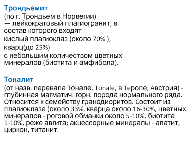 (по г. Трондьем в Норвегии) — лейкократовый плагиогранит, в состав которого входят