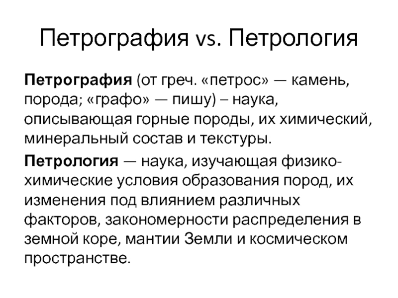 Петрология — наука, изучающая физико-химические условия образования пород, их изменения под влиянием различных факторов, закономерности распределения в земной коре, мантии Земли и космическом пространстве.