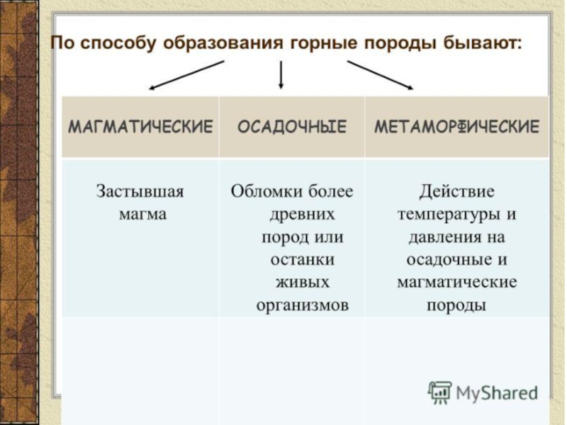 породы, а также характером самих ее минеральных составляющих (зерна минералов, обломки, органические остатки, вулканическое стекло).