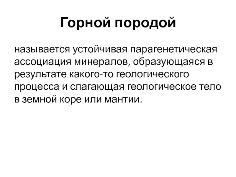 Горной породой называется устойчивая парагенетическая ассоциация минералов, образующаяся в результате
