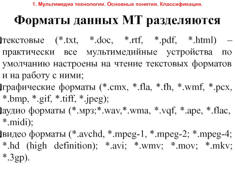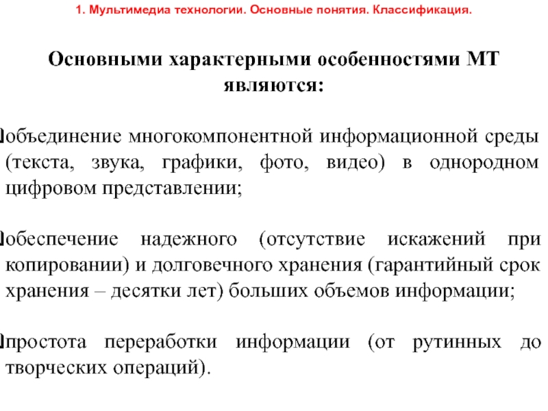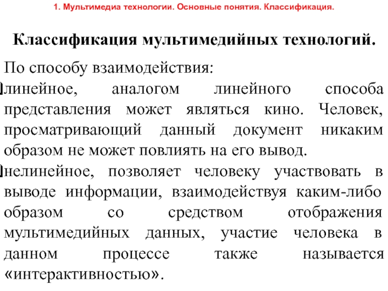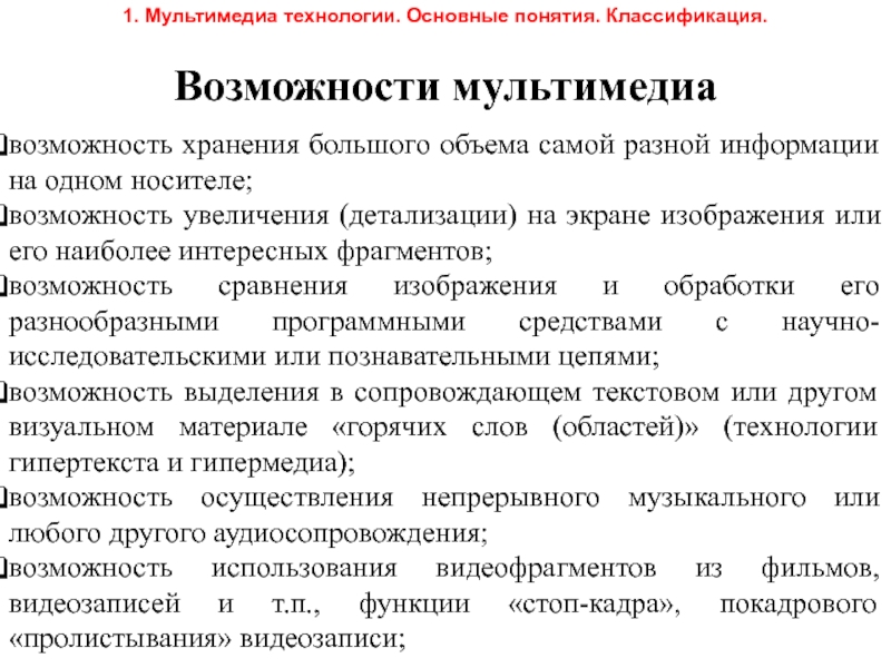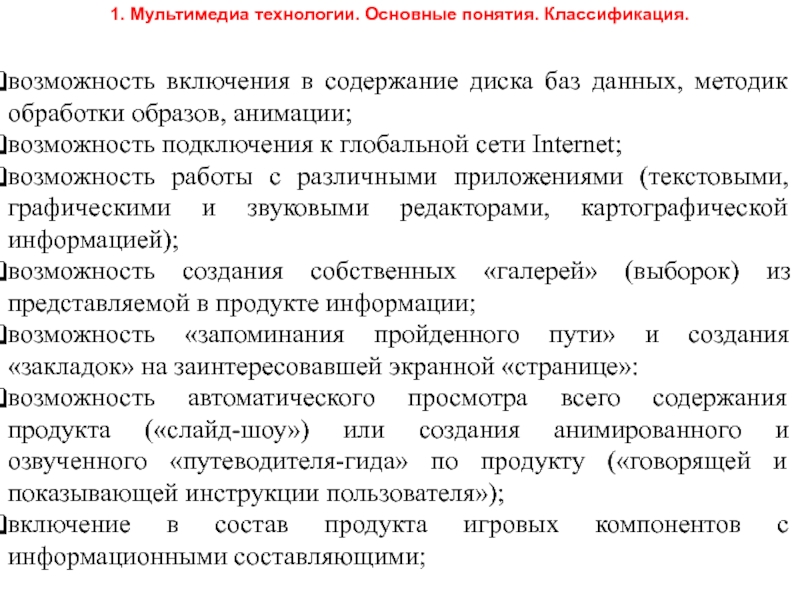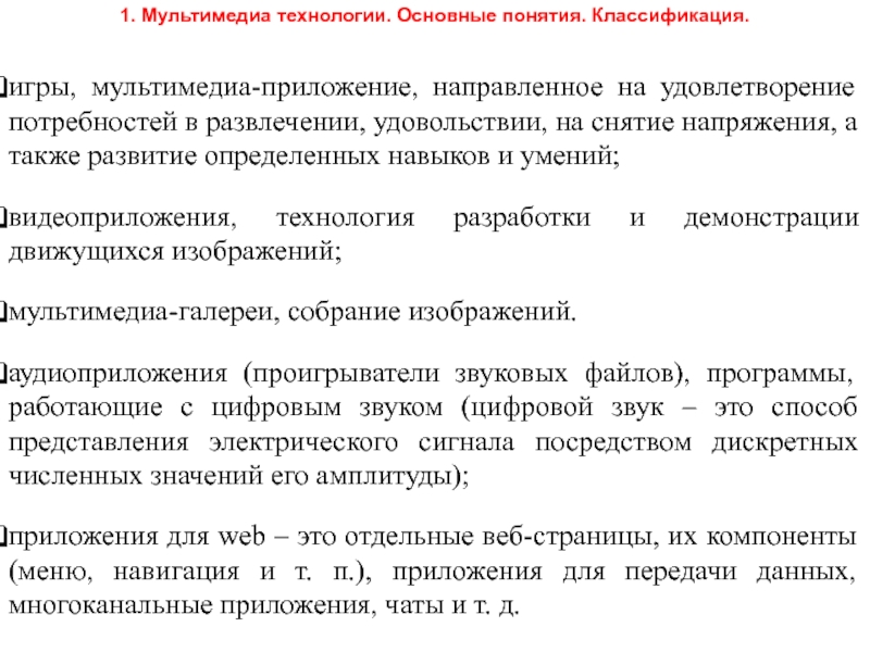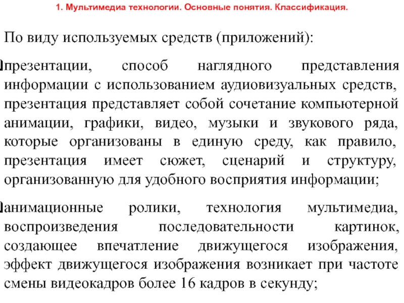 1. Мультимедиа технологии. Основные понятия. Классификация.