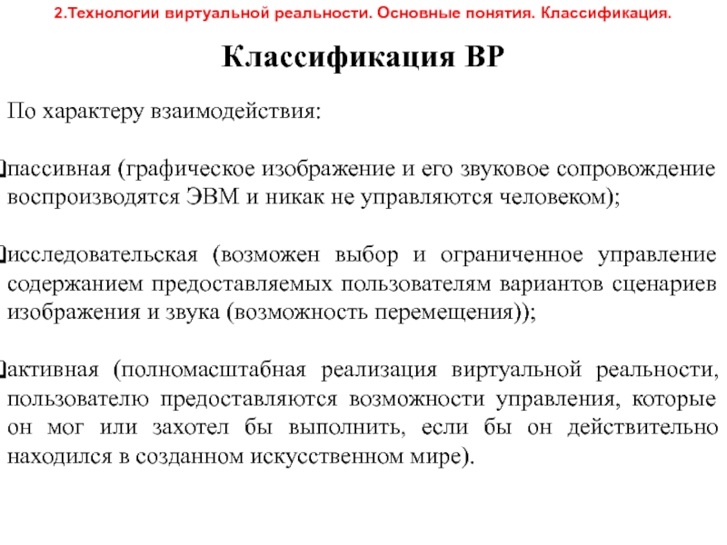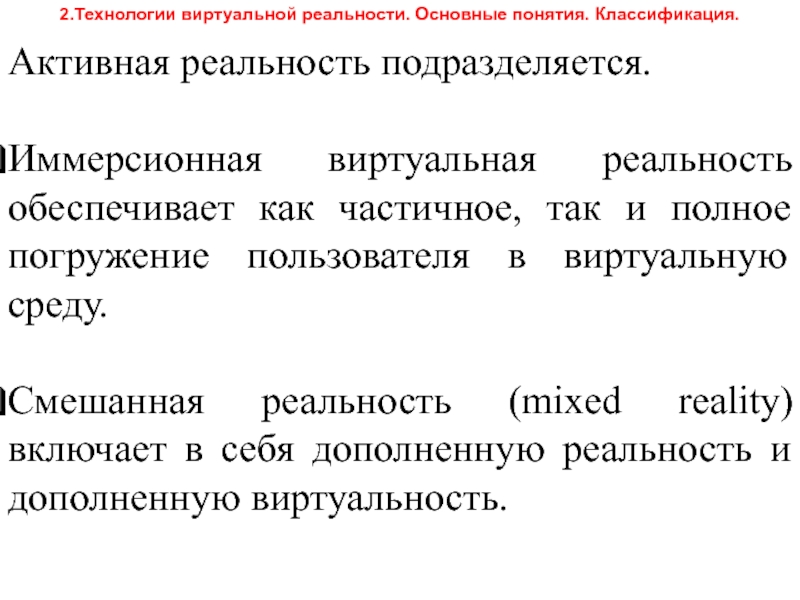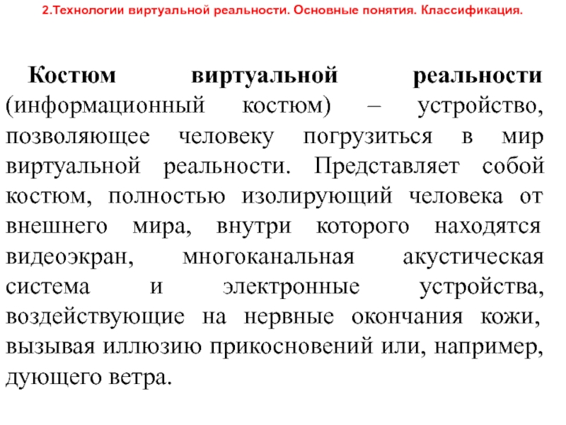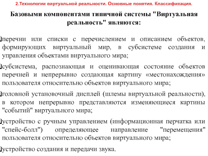 2.Технологии виртуальной реальности. Основные понятия. Классификация.