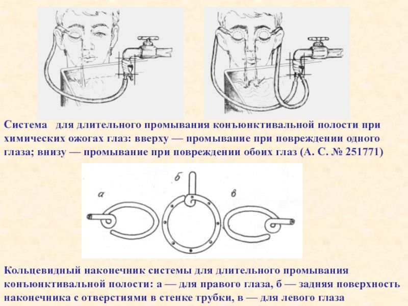 промывание при повреждении обоих глаз (А. С. № 251771)