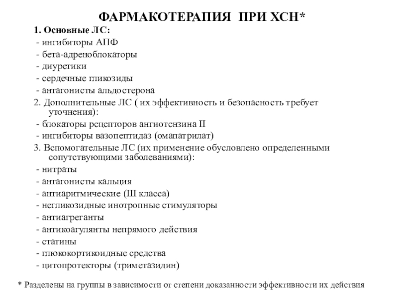 Слайд 25ФАРМАКОТЕРАПИЯ ПРИ ХСН*