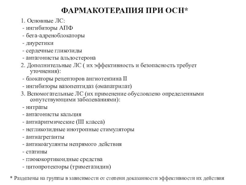 Слайд 24ФАРМАКОТЕРАПИЯ ПРИ ОСН*