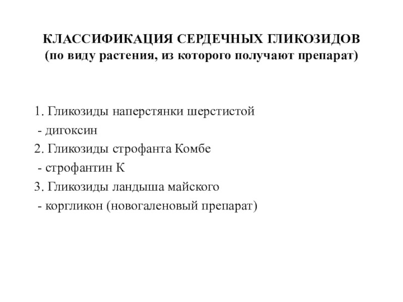 Слайд 11КЛАССИФИКАЦИЯ СЕРДЕЧНЫХ ГЛИКОЗИДОВ
